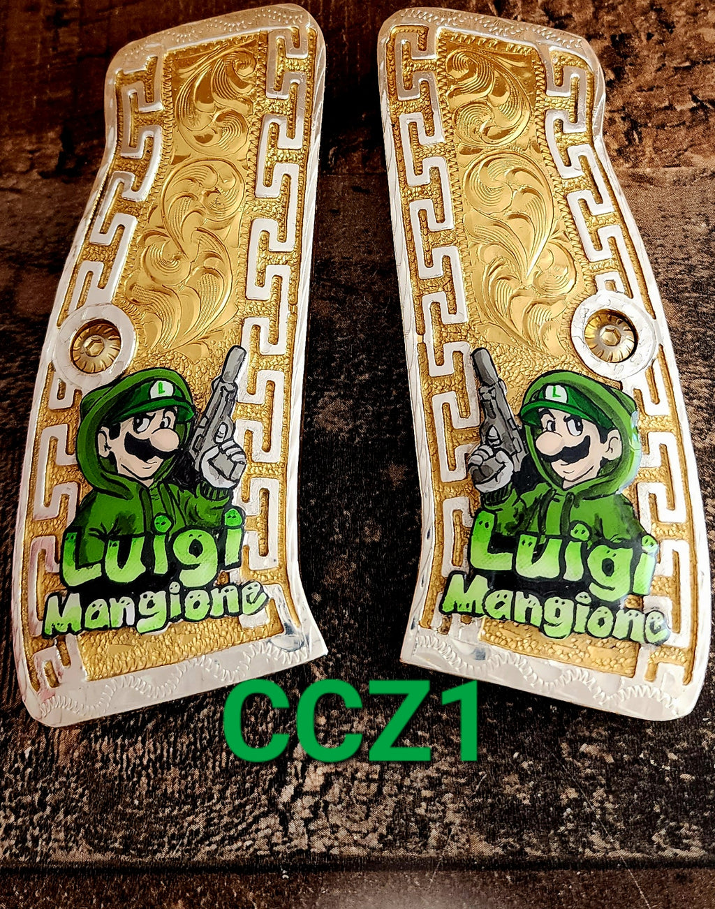 CZ 75 Grips cachas for Full Size CZ SP-01 OPS Mexican style gold and silver plated
